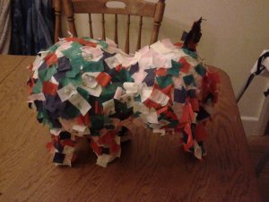 The entertainment was a very sweet, though a little overly solid,  elephant piñata, that Paul and the kids had lovingly made over the previous weeks. Filled with sweets from Stillwater sweets Australia. http://stillwatergift.com/kisswrappedsweets.aspx Aussie made, gluten free, generally old-school sweets that arrived in the loveliest barrel, which the kids now use to store their crayons. We didn’t give out lollybags – instead encouraging each child to make themselves a badge or magnet using the badgemaker borrowed from the local Community Centre.