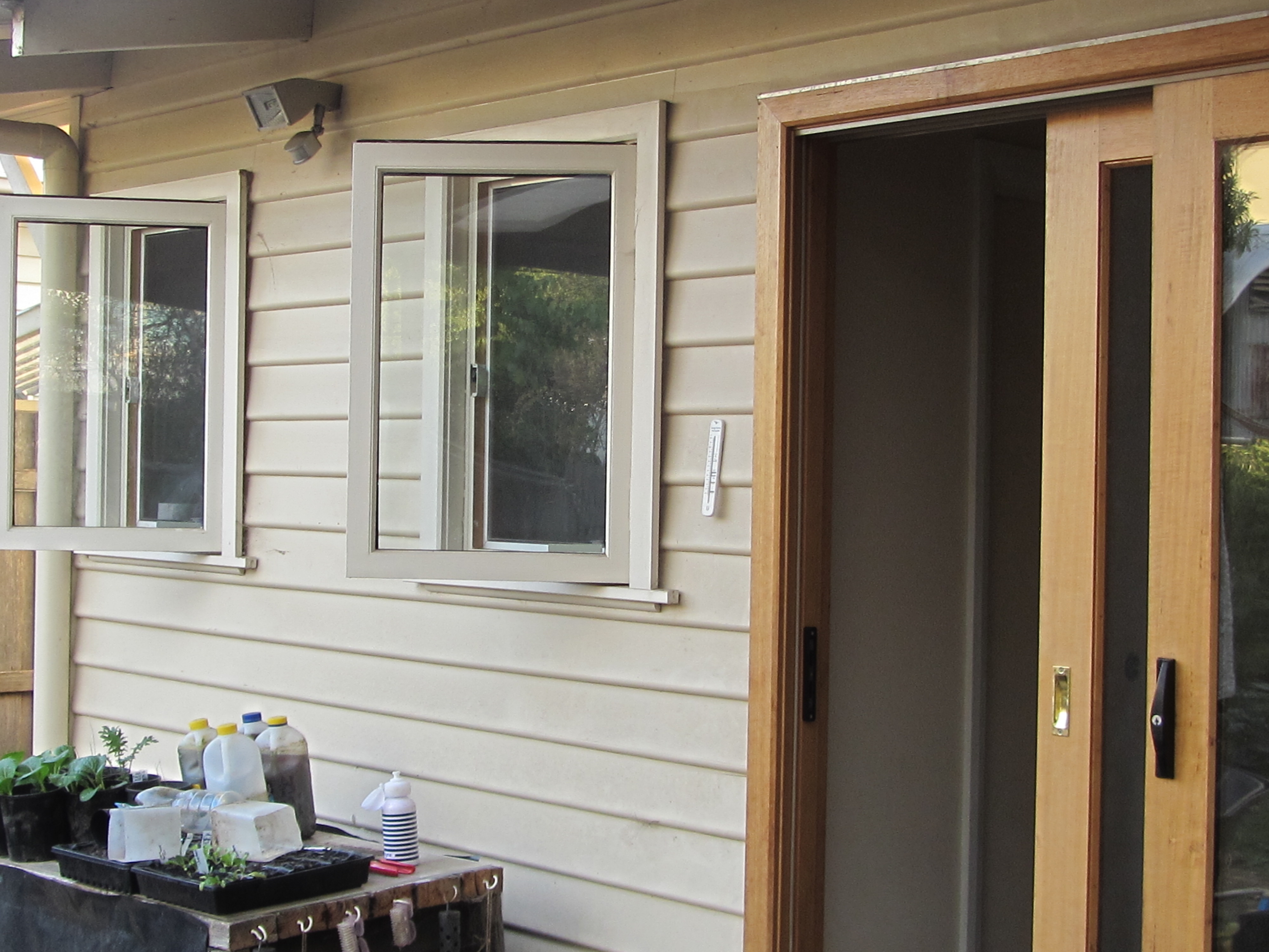 We also did some research into how to increase the efficiency of the fridge. Fridges use a bit less than 10% of the average household energy consumption but can have their efficiency greatly increased by thinking about where and how it’s used. Keeping seals in good shape, not opening the door frequently and lots of other behavioural changes can make them work better, so can good air flow behind the fridge. Nikki came up with a plan to put a shuttered vent into the floor, a vent in the wall at the top of the fridge and a alcove roof above the fridge. The theory is that cooler air comes up from underneath the house, moves across the element to cool the back and then exits outside, creating an airflow. I must admit that we never really tested how this changed our energy usage (An article in Renew mag claimed that it could increase efficiency of the fridge by 25%) but in theory it works. It also goes to show that with a little bit of forethought (and a couple of hours on the internet) we can build in many energy saving changes in to our houses that decrease our consumption without us even noticing.