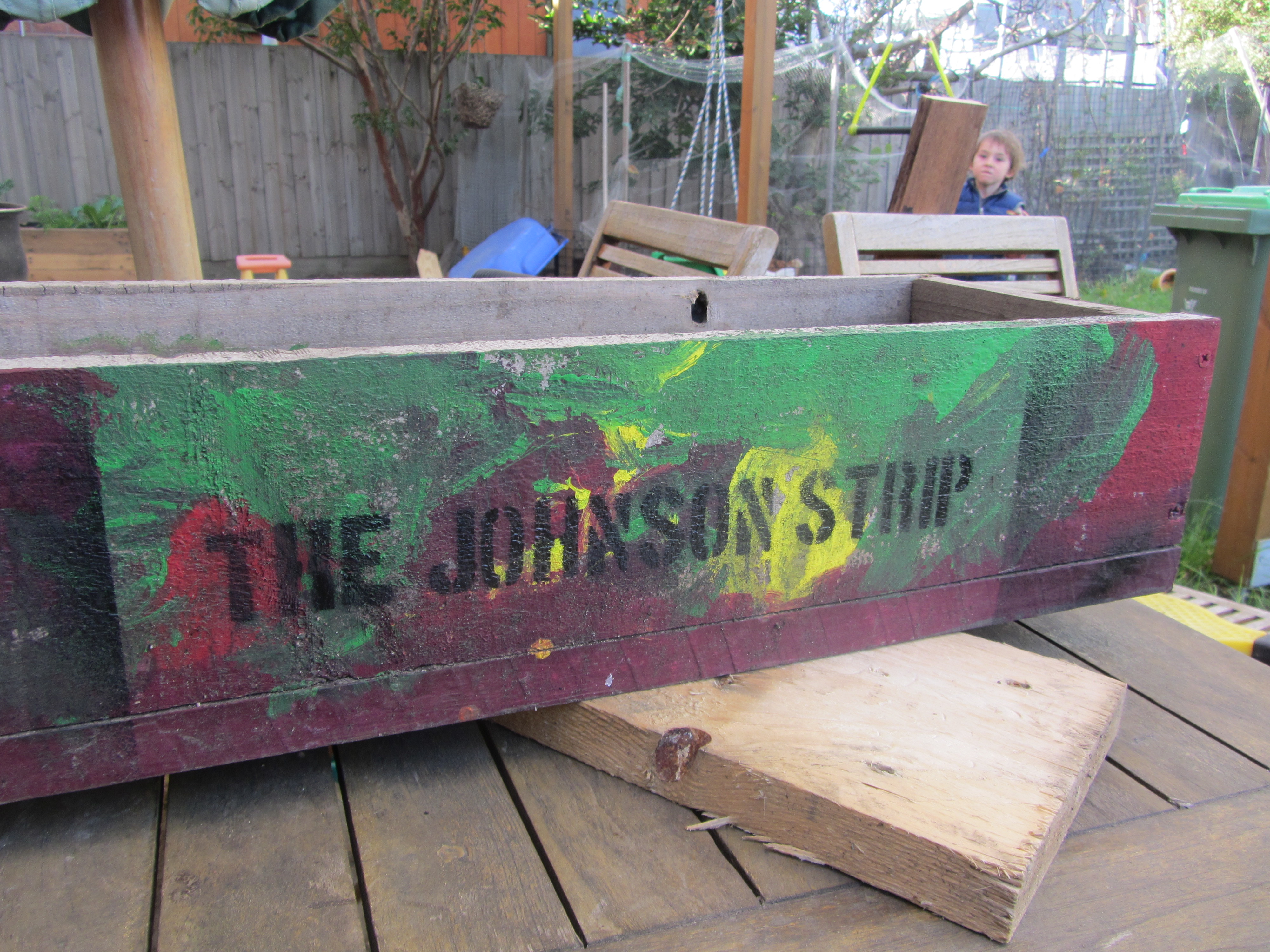 The response to the first box on the strip has been so good that I’ve followed the dimensions and built another matching box. I’m quite proud of this one and can’t wait to ‘wick’ it, paint it and get it on the nature strip. I’m also kinda chuffed that the broken children’s blackboard that has been sitting around the house is finding a new life as a box frame.