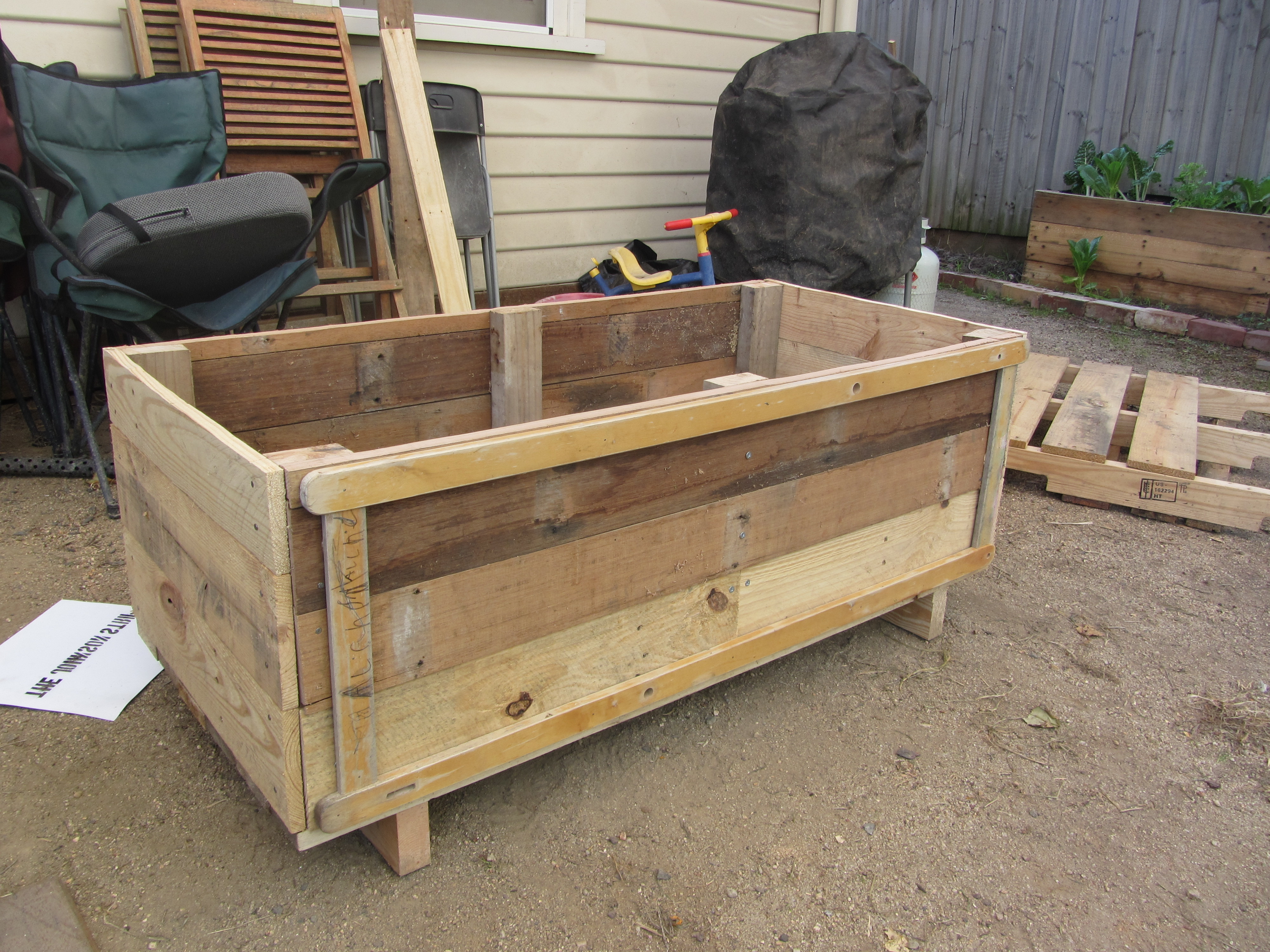 This is a little planter box made from some spare pallet bits that I have filled with flowers (yes, I planted flowers!). I’m going to make about 6 of these, wait until they are growing and flowering and then line the hideously ugly fence of a car park that backs on to our street.