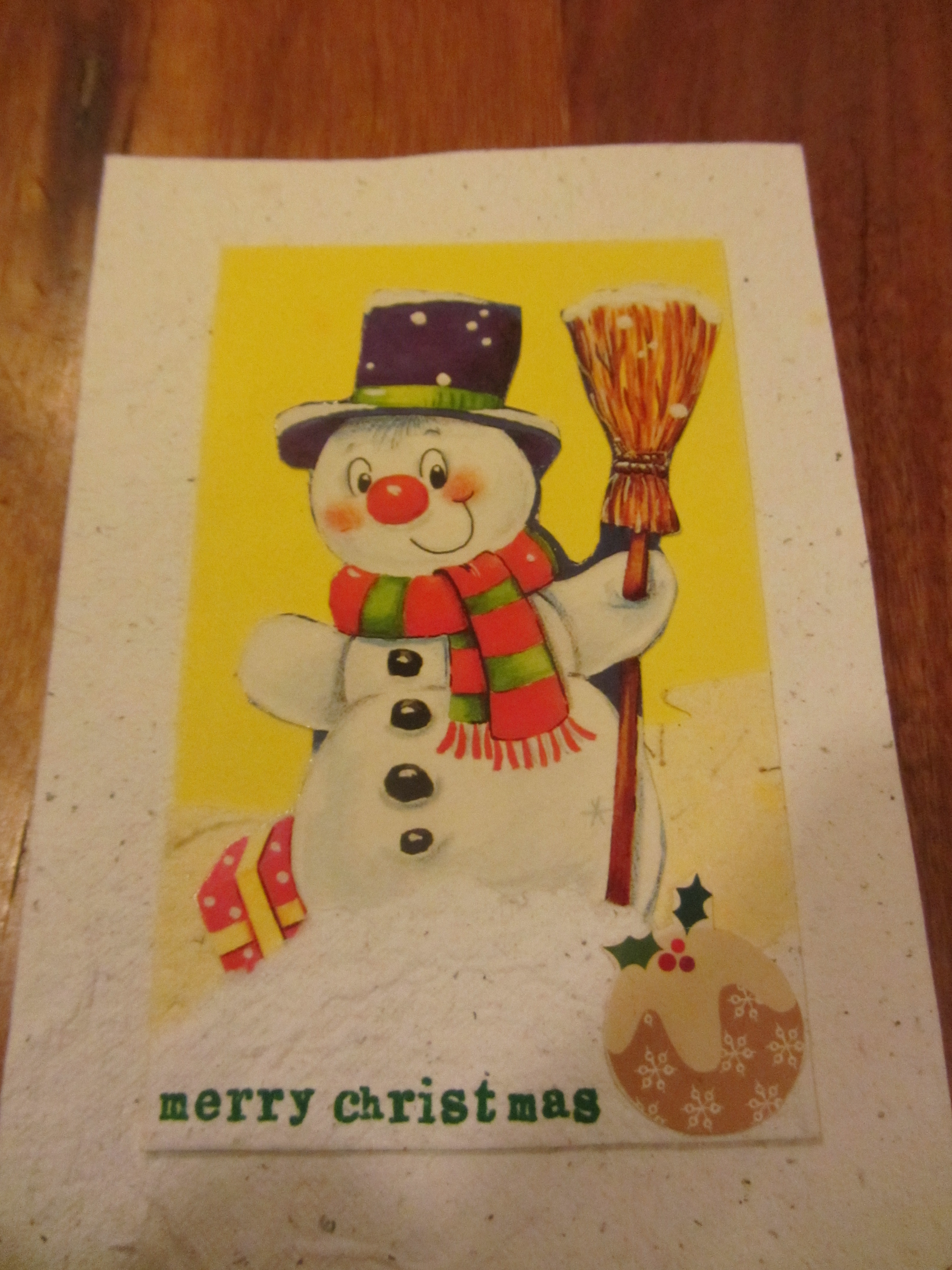a shredder. I really like the concept of sending cards by the post but hate the reality of having to buy mass produced cards with the most generic content. As such I’m wrapped that she has been making cards from the remnants of peoples previous card. She uses the bulk of the card to make new paper then scavenges some of the images and uses small wooden letter stamps to do some of the titling. She’s also taken to putting a sheet of paper inside so that these cards can be re-used for eternity. Along with this she has been making small thank-you cards and is setting out to work together with an old style printer (and we’re talking large wheels, metal plates and those little individual letter things old) to print invitations for a friends wedding.