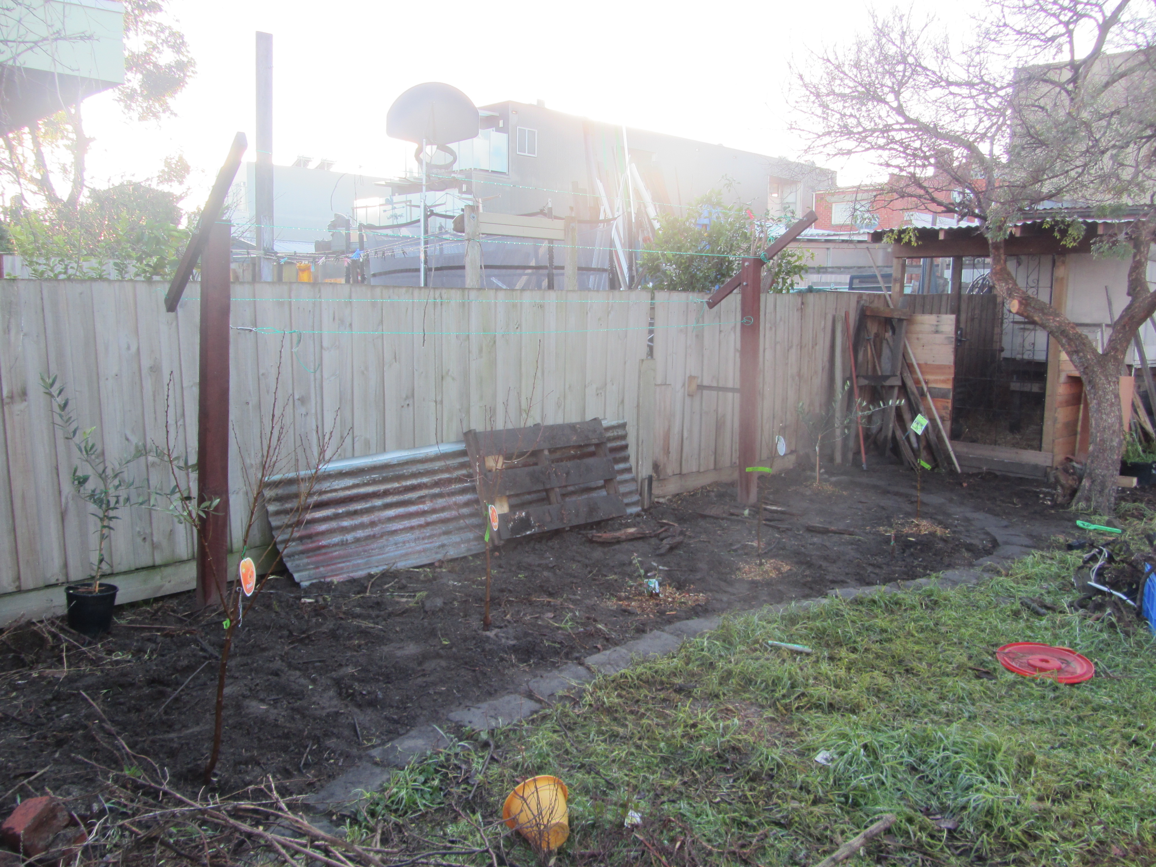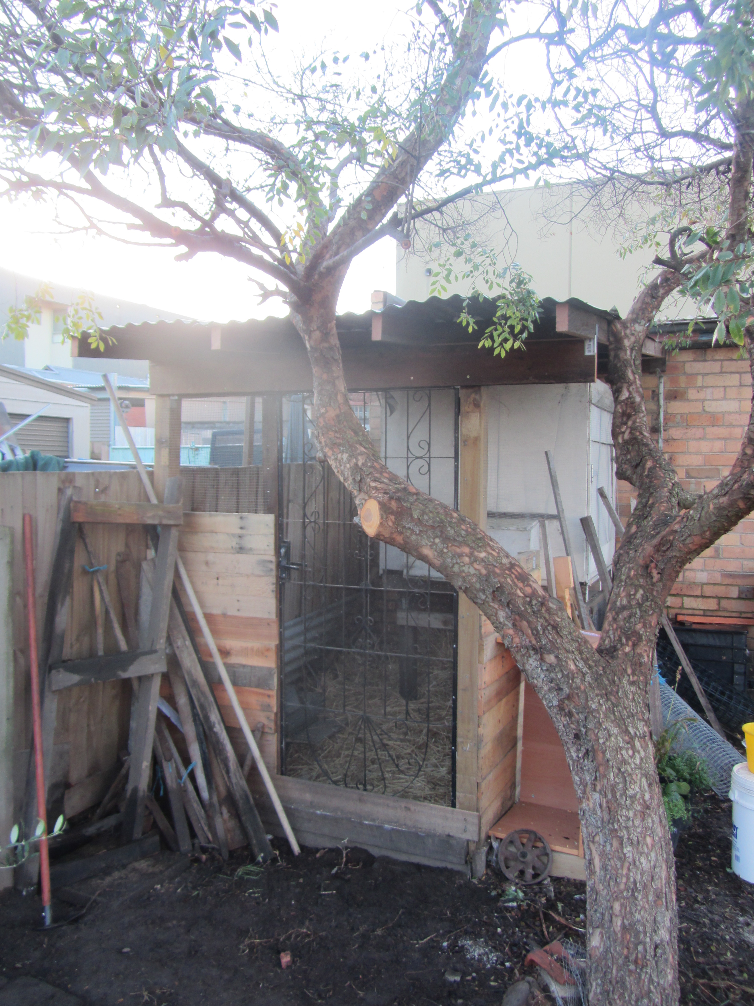 Our chicken coop started off it’s life as a small cubby house that was left behind when we bought the house. It was in a terrible place (in the middle of what is now the new fruit tree planting from below) and I don’t think was ever going to be useful for a cubby house except for small