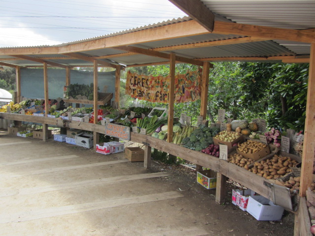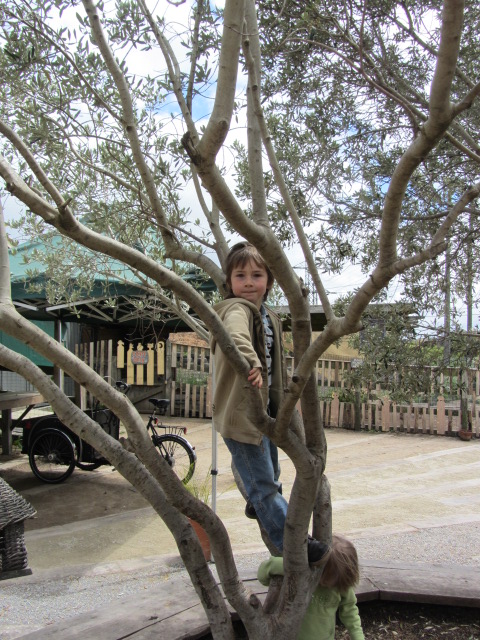 For the most part our shopping centre IMG_1279looks like this and what we buy is defined by how far away it comes from. If the number is under 160 then it’s in and we’ll work out how to cook it later. We also get our bread from here or from our local sourdough baker who uses flour that I will admit is a just out of our zone but not by much. We did start baking our own bread with thIMG_1280e help of a second hand breadmaker but this exploded. We will get back to it but there is so much good bread around it’s hard to feel a pressing need. Our shopping centre is so advanced it’s even got a playground, we call it a tree!